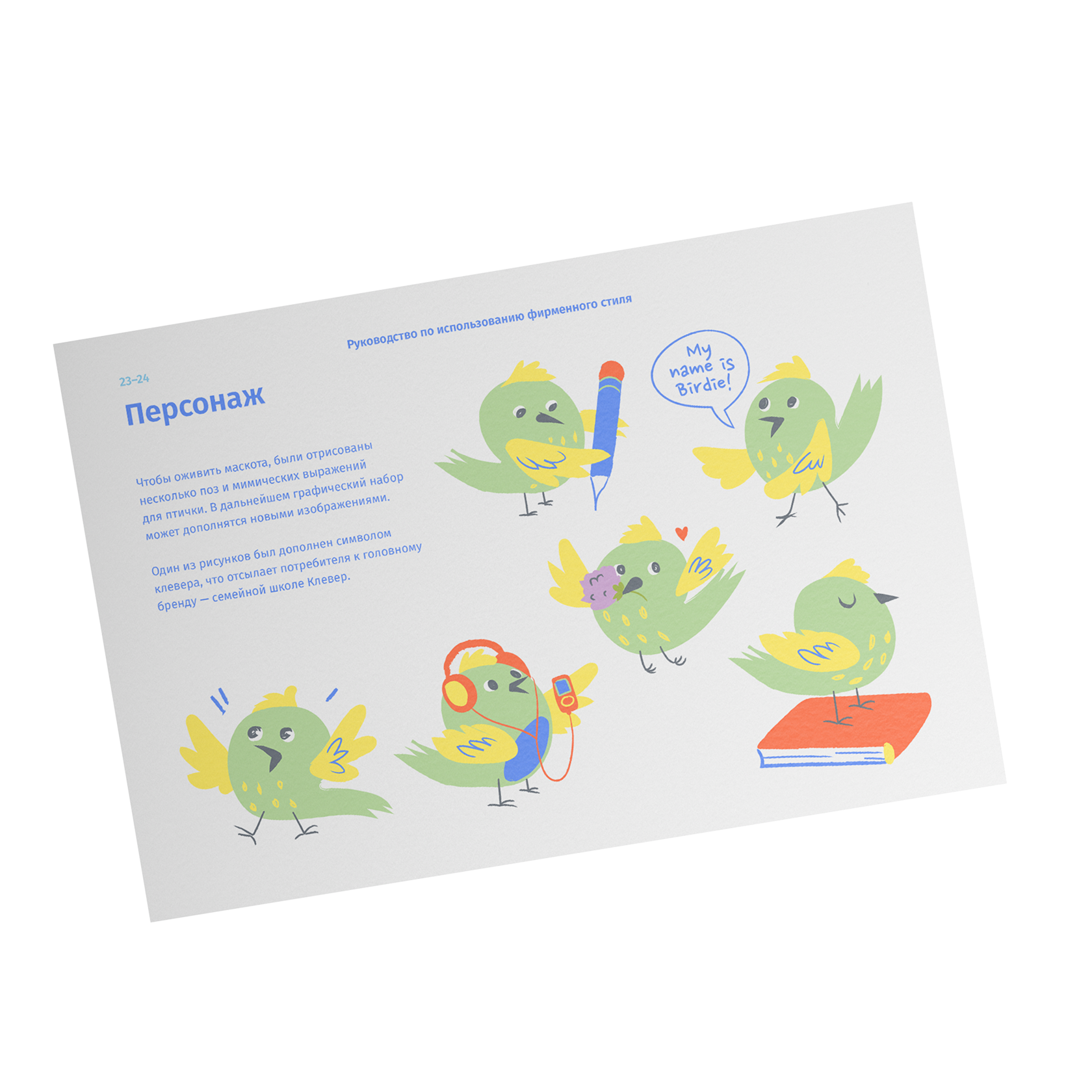 Птичка отрисована художественной кистью, что добавляет фирменной айдентике дружелюбия. Для создания динамичного визуального ряда были разработаны несколько иллюстраций. Добавление символа клевера на одну из них — тонкая, но эффективная связь с головным брендом.